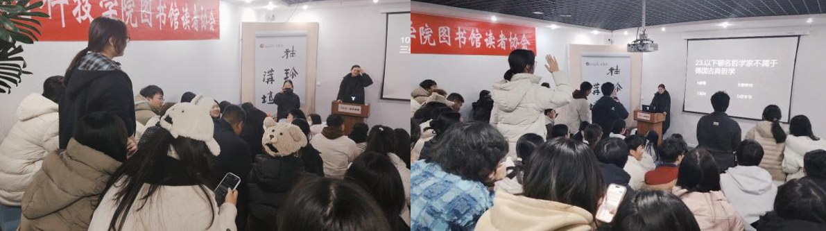 问答竞赛环节作为大赛的开篇之战,迅速点燃了现场氛围。竞赛题目涵盖图书馆馆藏分布、借阅规则等实用知识,同时融入历史社会常识,做到古今贯通、内容丰富。面对一道道兼具知识性与趣味性的题目,同学们展现出高涨的参与热情,大家踊跃举手、积极抢答,不仅比拼知识储备,更考验反应速度。在激烈的问答交锋中,同学们拓宽了知识视野,也加深了对图书馆资源的了解。