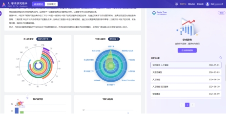 ②学术趋势:通过智能的数据分析和挖掘生成领域概貌,并以图表方式呈现领域发展脉络,为科研人员提供一个全面、深入的领域动态观测途径和精准、有价值的趋势分析。