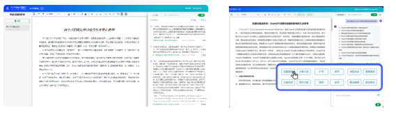 ①资料研参:AI助手将研究与创作环节有机结合,实现高效创作。当用户在研读文献时,可便捷、系统地记录研读和问答中的文献精要和研究心得,为后期创作准备翔实的学术素材。当用户进入创作阶段,可便捷的将研读资料应用在论文创作中。