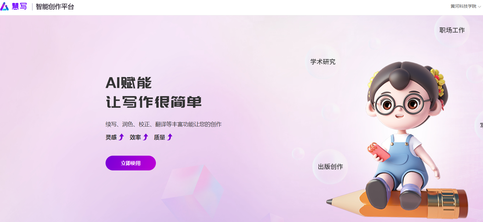 慧写智能创作平台,以千亿级参数大语言模型及生成式 AI 技术为依托,深度赋能政府、企业、科研、教育、文化等多领域业务场景。该平台构建起一套完备的智能写作解决方案,全面覆盖通用写作、专业创作以及学术研究的全周期流程。